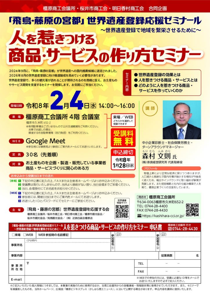 ■申込方法 :下記PDFに必要事項を記載し橿原商工会議所までFAXまたはホームページよりお申込みください